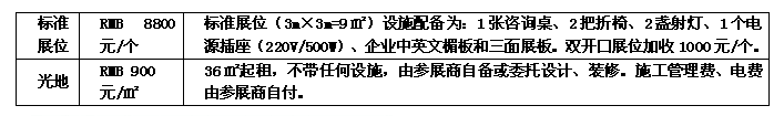 展位費(fèi)用: