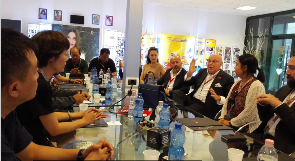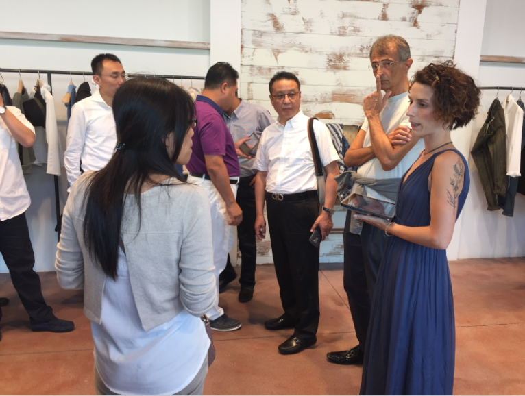 位于博洛尼亞的Centergross小鎮是意大利著名的快時尚B2B產業集群&快時尚買手圣地,這里聚集了250家企業400多個品牌,工廠分布在周邊,園區內一排排的房子前邊是展廳,后邊是倉庫,產品每周更新,銷往世界各地,買手可以來這里現場選貨,也可以網上下單,店方還會根據產品在全球各地的銷售數據分析幫助買手們搭配貨品。每天成千上萬的新品在這里成交,買家當天即下單、付款、發貨,幾個小時之后,這些產品就會出現在零售商的店內面向最終的消費者。通過空運,這些產品兩天后就可以到達中國。這個近似于產業園的企業集群,以大量的品牌儲備,親和的價格優勢,快捷的運作模式,引起了代表團成員的極大興趣。在小鎮管委會的帶領下,代表團考察了部分企業品牌,詳細了解了運營模式,這里的產品以快時尚為主,批發價格多在20、30歐-70、80歐之間,訂貨不受款型貨號限制,只要訂單總額達到1000歐即可甚至可以更低,這對于正在向自采自營轉變的中國零售企業具有相當吸引力。小鎮管委會非常重視此次中百協代表團的到訪,午間,管委會主席Lucia Gazzotti女士在古老的宅院中熱情招待中國賓客。
