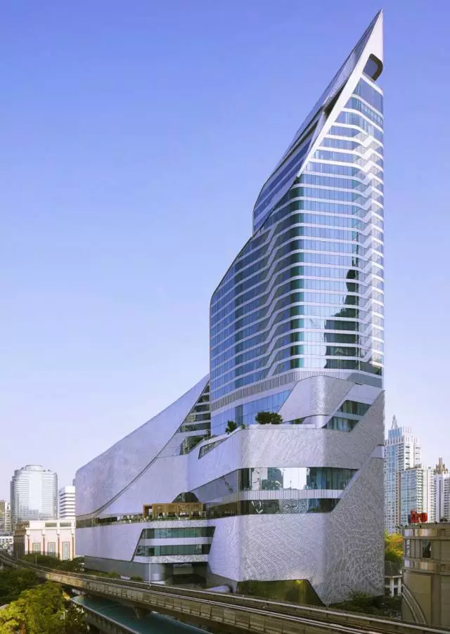 Center Embassy位于曼谷市區最核心地段,該地塊以前為英國大使館所擁有,其領先于全球高端水準標志性建筑,運用擠塑鋁板組成的外表皮,如同鑲嵌著箔鋁的盾牌,長達400米的櫥窗展示 ,構建出反射周邊環境的充滿活力的設計。一個集合餐廳、酒吧、畫廊和聯合辦公的共享空間,位于Center Embassy 6層。以白色為主色調,搭配細致的條形燈光以及各種綠植,如同置身于一個理想的精神樂園。