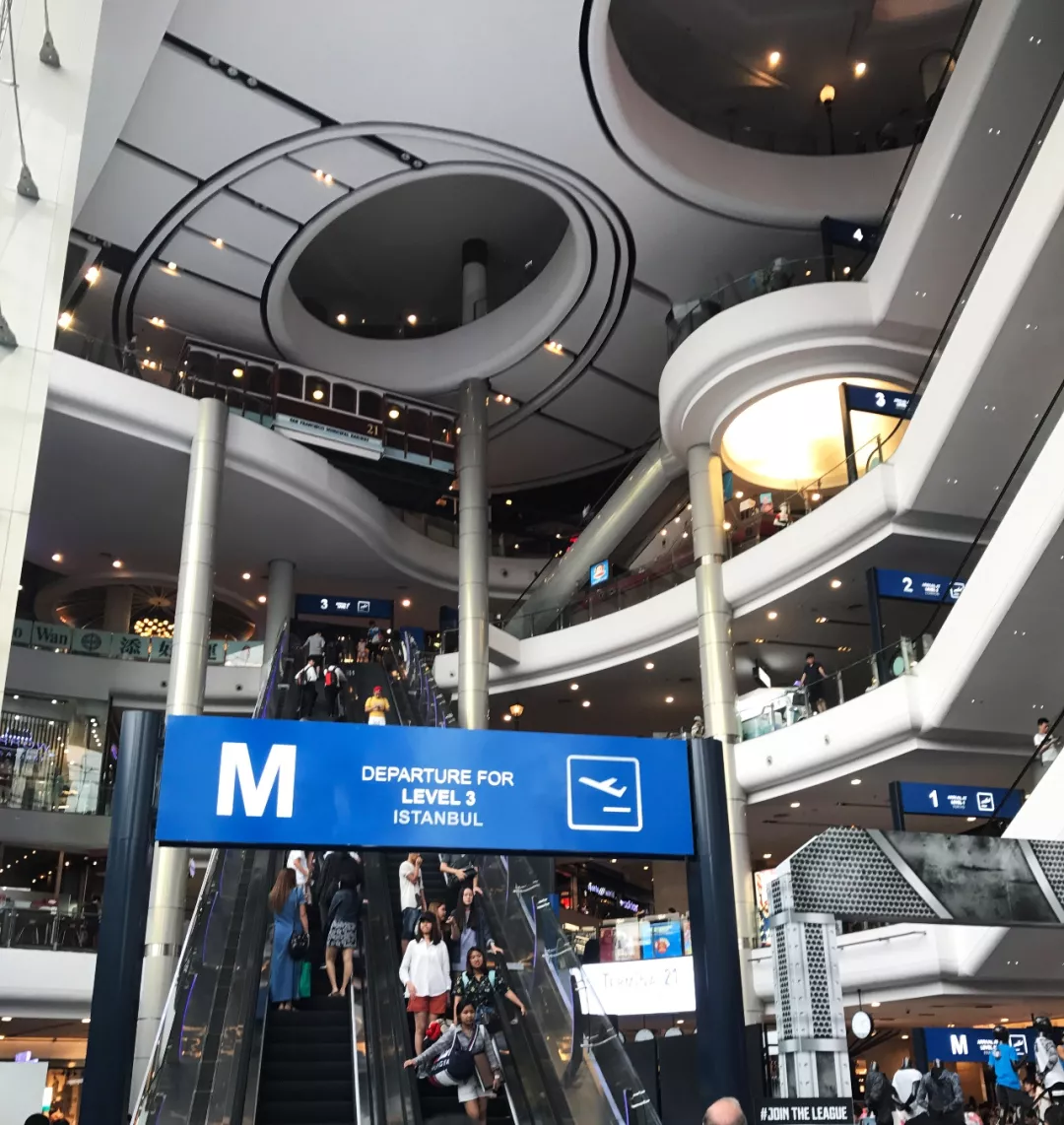 下午來到Sukhumvit商圈,考察曼谷素坤逸著名的商場Terminal 21,它是一座大型綜合購物商場。整個商場以機場航站樓為概念,每一層則配以不同國家城市的特色裝潢而成。傍晚來到 Emquartier購物中心,它是由3棟外觀風格各異的建筑組合而成,分別是左側的The  Helix、右側的The  Glass及最內側的The  Waterfall  Quartier,這里是當地白領居民流行逛街的地方。