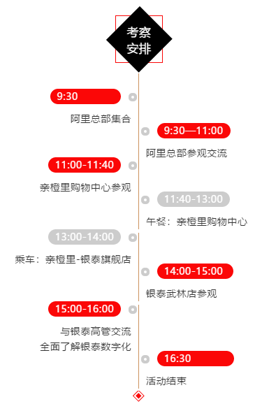 考察僅限數字商業分會成員企業,歡迎會員企業的高層報名參加,限額40名,先報先得。分會會員本人參加免費(住宿自理),非會員本人參加,需繳費300元/人,包括18日午餐及親橙里至銀泰的交通等相關組織費用。
