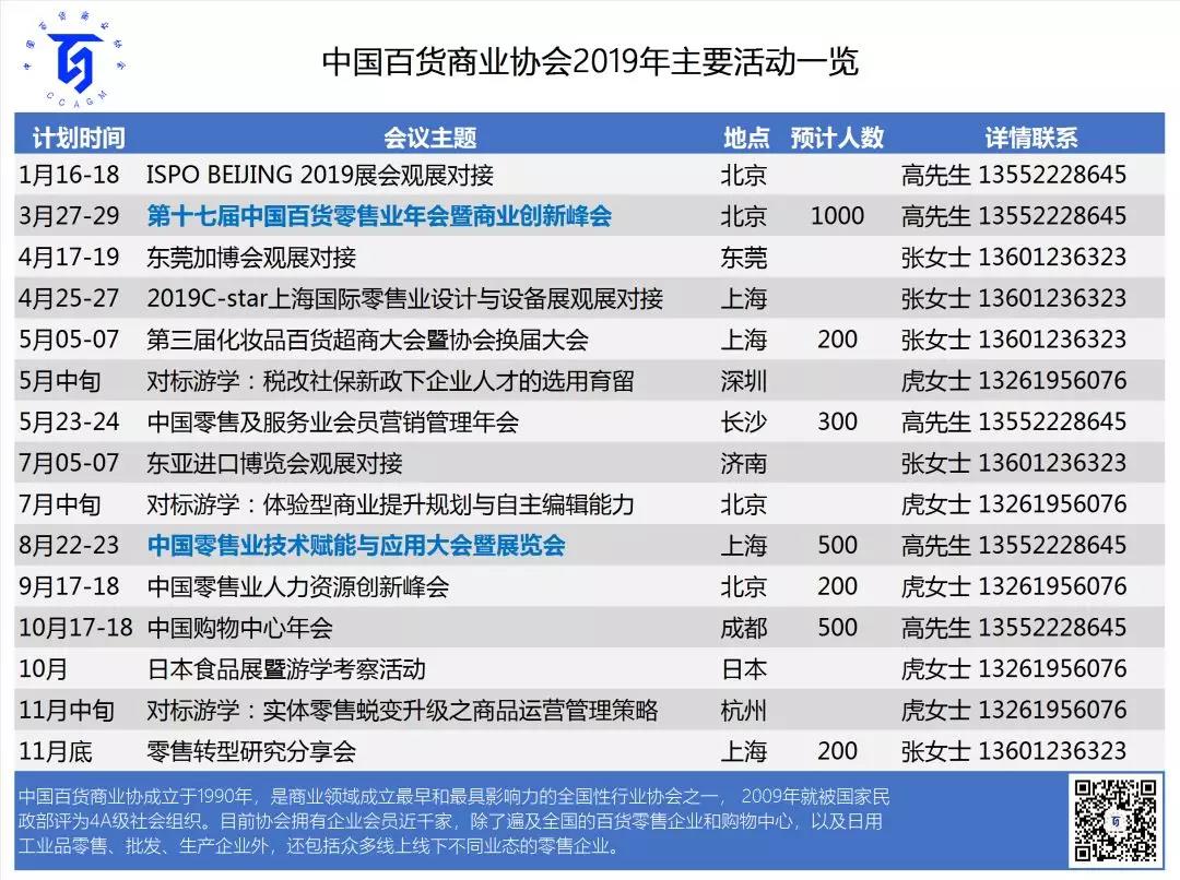 2019年主要活動計劃--中國百貨商業協會與您攜手再出發