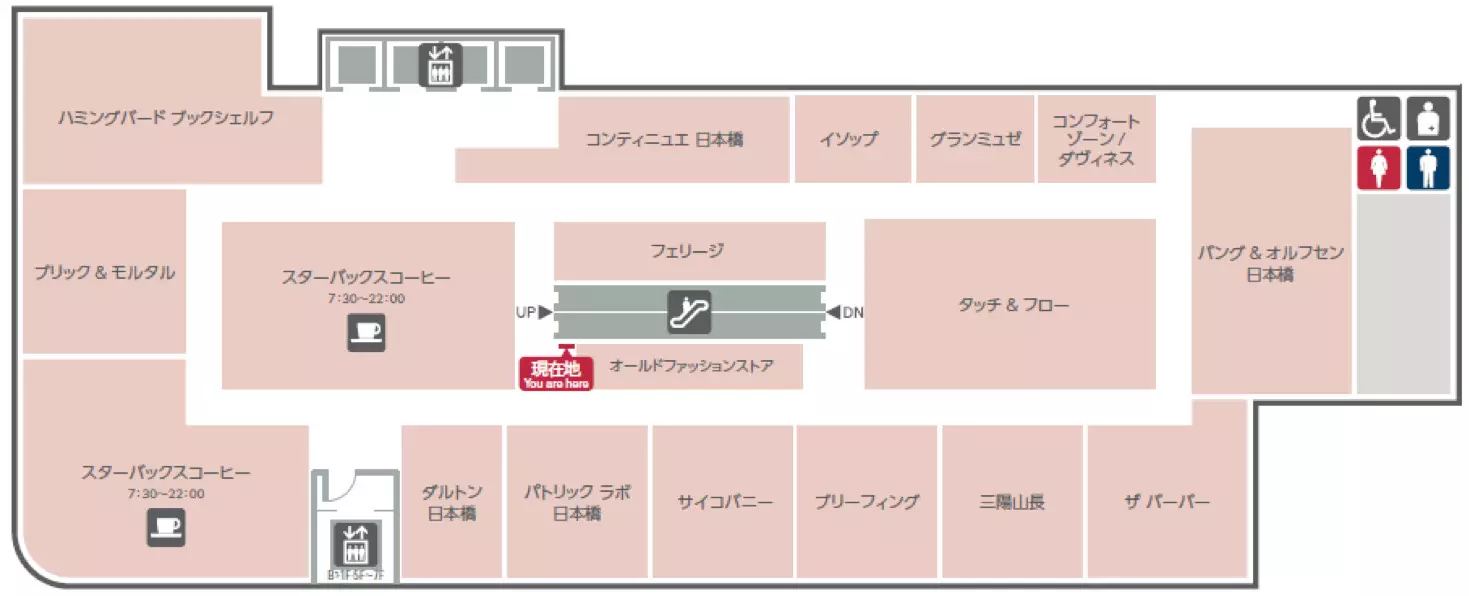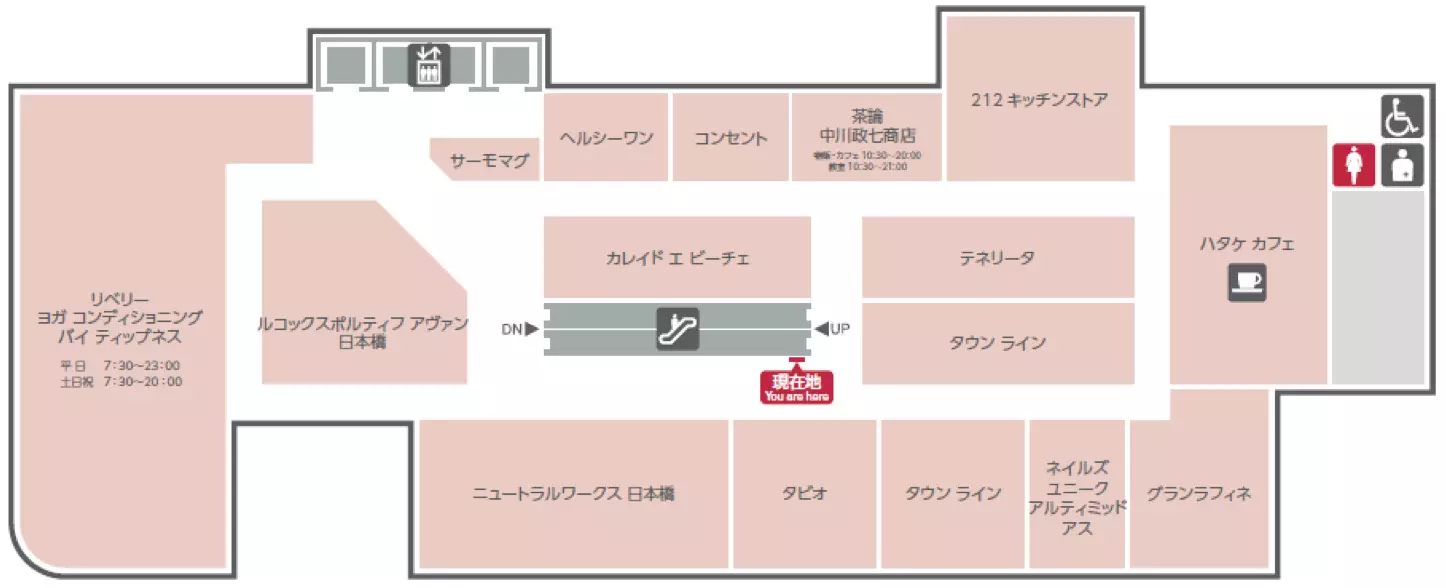 1F為在日本橋生活的人們提供可以散步的街道,其中有10家店舗(全館13店舗)在清晨7點30分即開始營業(yè)。