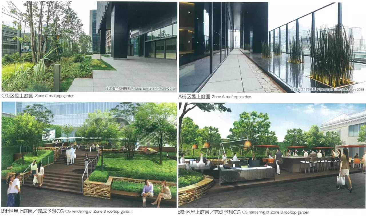 日本橋高島屋的新館與本館、東館三座建筑頂端相連,分別在屋頂設(shè)置了屋頂花園的空間,因為有了連橋相通,顧客可以在這片綠色的空間里放松休憩、交流溝通、鍛煉運動,充分享受城市氧吧的樂趣。