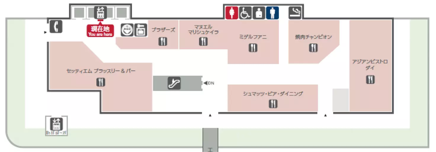 日本橋高島屋.SC的7F與本館相連,相連后的7F的面積為5000多平方米,聚集了30多家受顧客歡迎的餐廳,也是整個日本橋新館項目的重點區(qū)域。高島屋.SC在規(guī)劃建設(shè)的最初,希望通過在頂層打造一個這樣的空間,產(chǎn)生客流的“淋浴效應”,使顧客由上而下流動起來。