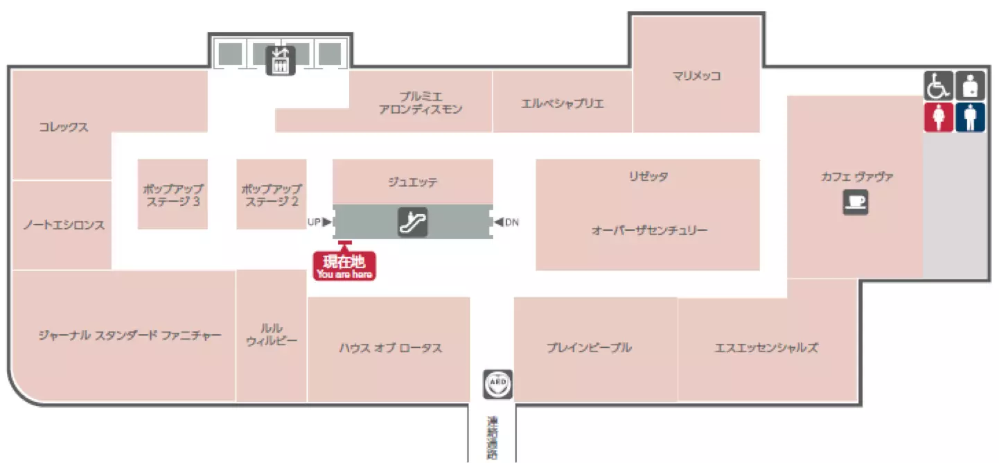 3F匯集了可以豐富日常生活的生活方式品牌,并持續(xù)定期更換hope up stage以引領(lǐng)風尚。2F,3F將一些服飾與雜貨等商品組合起來,進行提案式販賣。