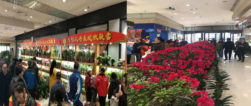 (3)大型花卉展,會員專享價,顧客駐足觀賞及自拍的場面。