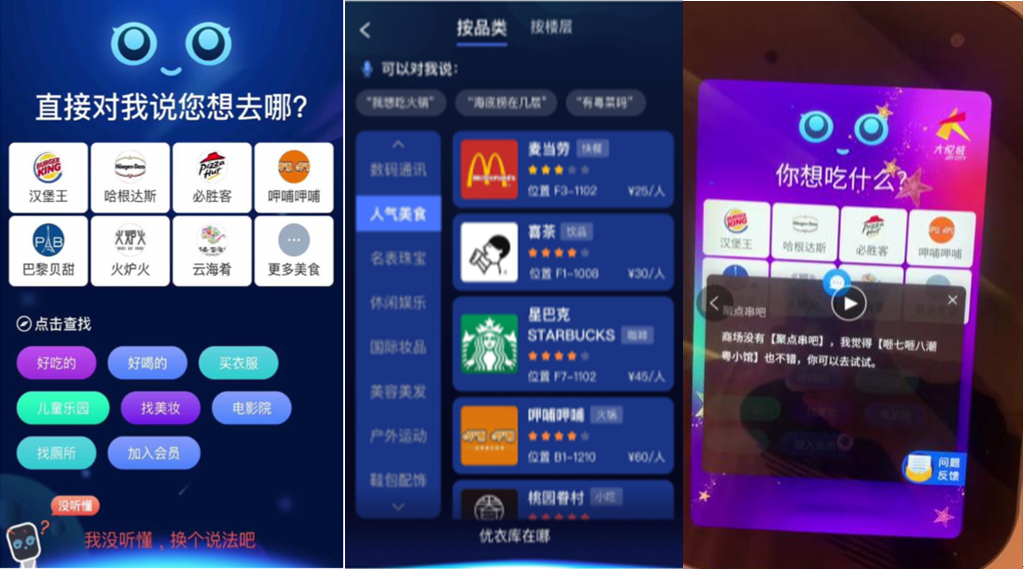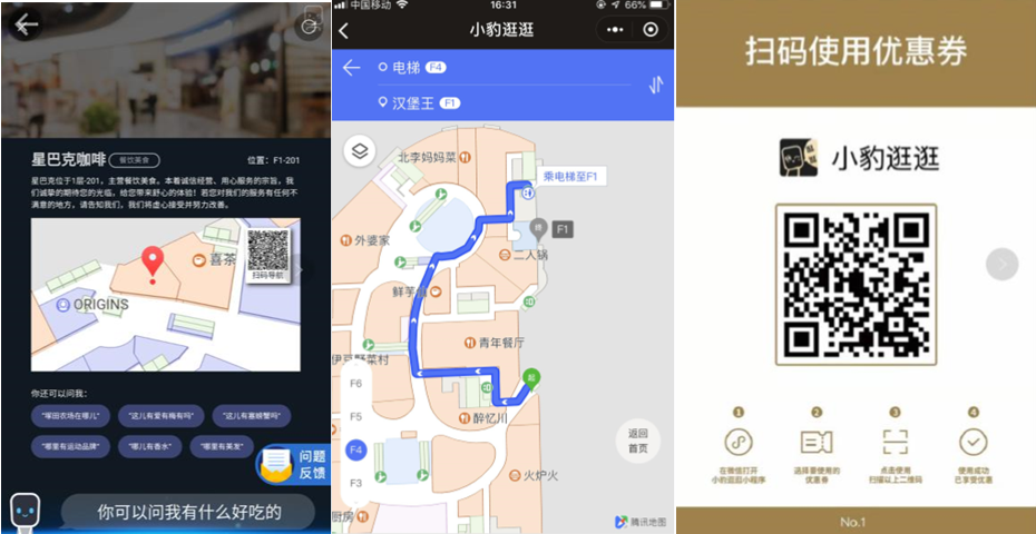 語音搜索+消費指引:“豹花瓶”能夠主動問候顧客,吸引顧客注意。顧客通過語音就能夠完成交互,快速完成店鋪搜索。目前,單臺“豹花瓶”工作日每天能夠與顧客進行有效交互超過1000次,周末超過2000次。
