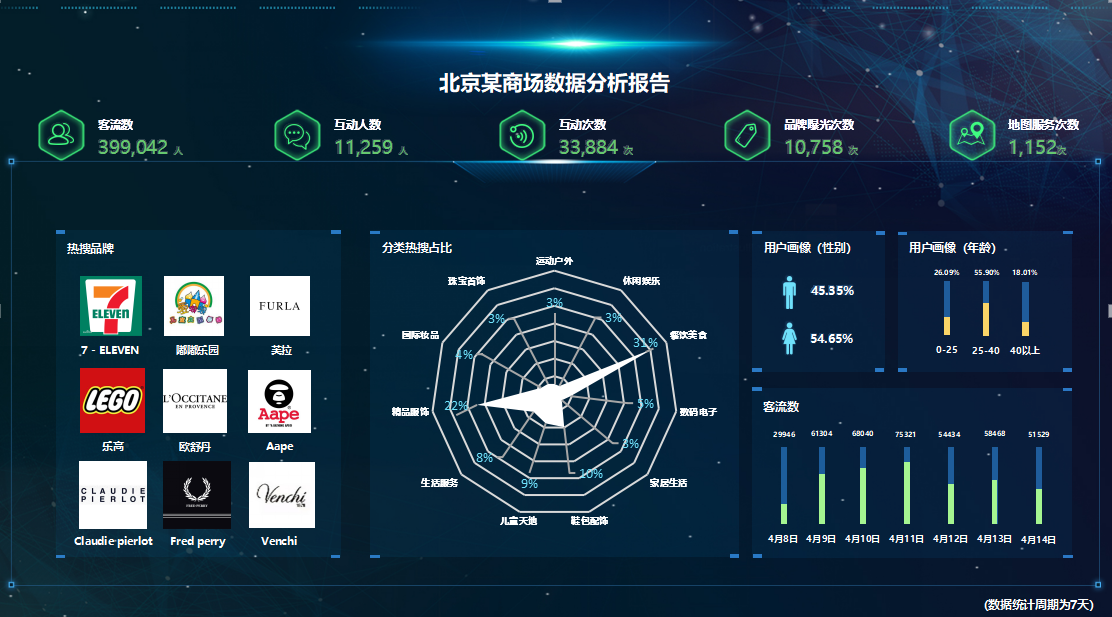 “豹魔鏡”后臺+大數據分析:作為數據收集和分析后臺,“豹魔鏡”能夠統計與用戶的交互量,通過記錄顧客的交互行為和使用習慣,進行主動的數據采集,并在云端進行數據管理與分析,從海量數據中分析出用戶畫像、熱搜品牌、客流數等有效信息,為商場帶來有價值的信息,以獲得更好的商業價值。同時“豹花瓶”能夠7*24小時工作,能夠代替商場模特導購等服務人員,極大減少人力成本和傳統營銷的推廣成本。單臺“豹花瓶”日均接待人數超過500人,相當于高峰期服務員接待量的2倍,且運營成本僅為服務員薪水的五分之一。