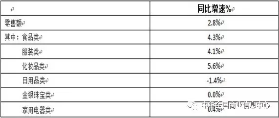 2017年春節黃金周全國百家重點大型零售企業零售額同比增長2.8%