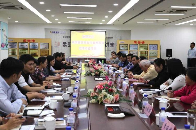 圖為歐亞集團(tuán)曹和平董事長分享:“歐亞集團(tuán)的經(jīng)營理念、企業(yè)文化及戰(zhàn)略布局”