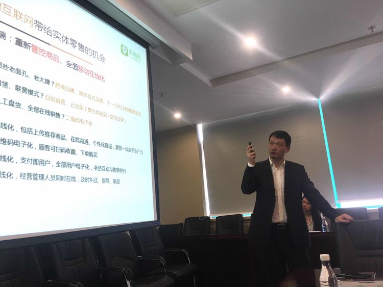 圖為大商集團(tuán)劉思軍總裁分享:“天狗網(wǎng)如何做到兩年銷售額破百億,助力實體店擁抱互聯(lián)網(wǎng)”