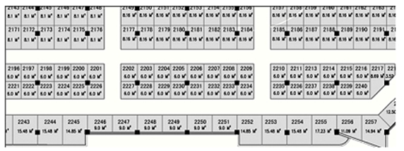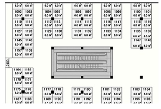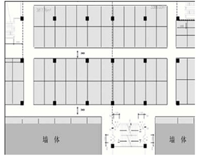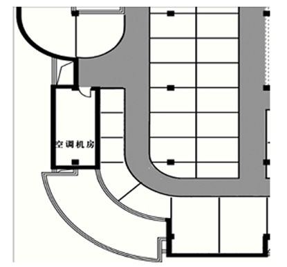 在兩條縱橫通道交叉時,如空間太大,則可考慮采用環形或敞開式,使分割與統一標準鋪位面積相差不大。