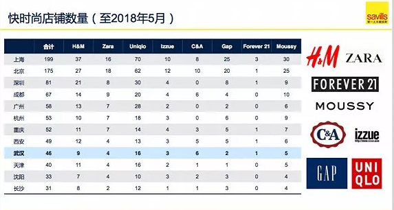 若以快時(shí)尚的店鋪數(shù)量來反映零售狀況,第一太平戴維斯2018年的最新數(shù)據(jù)顯示,武漢總計(jì)46家店鋪,和排名第一、有199家門店的上海頗有差距,它甚至也被重慶、西安甩在后面,在全國排名第9。