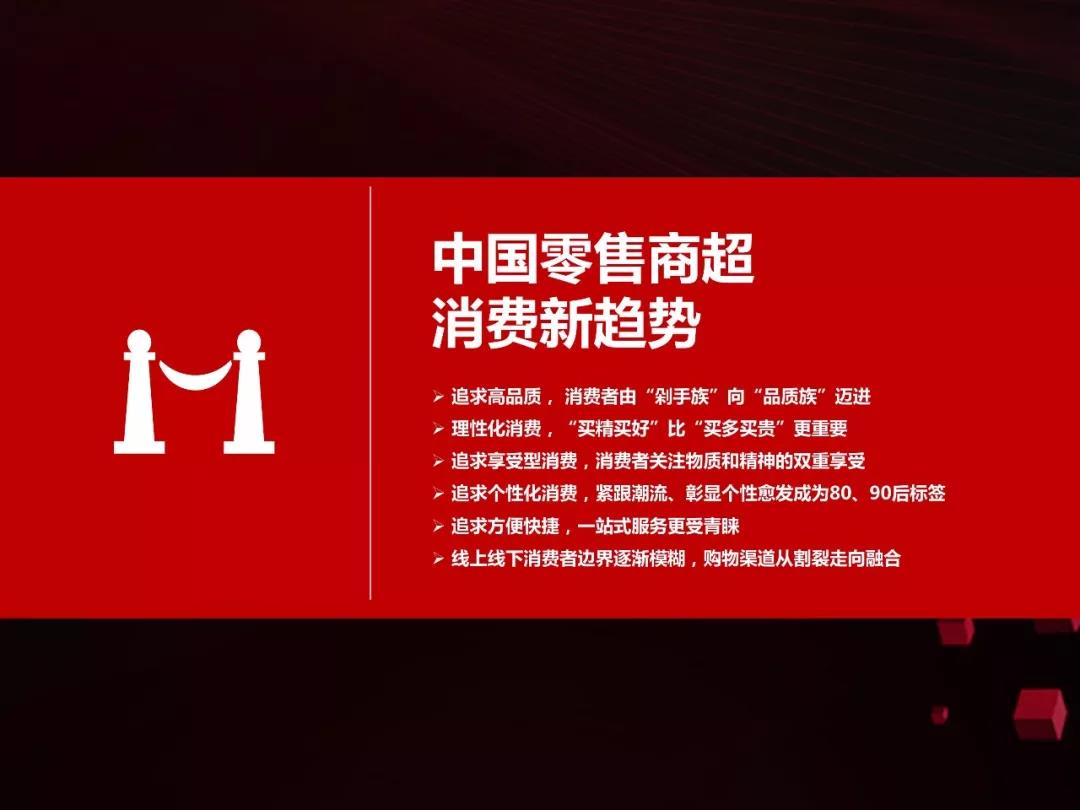 隨著國民消費結構的升級和消費主力的變遷,人們的消費觀念不斷轉變,消費者對高質量商品的需求快速增強,對服務性消費的需求潛力也在不斷釋放,購物時越來越追求方便快捷,購物渠道從割裂走向融合,零售商超高質量消費趨勢尤為突出。