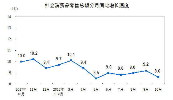 2018年10月份社會(huì)消費(fèi)品零售總額增長(zhǎng)8.6%