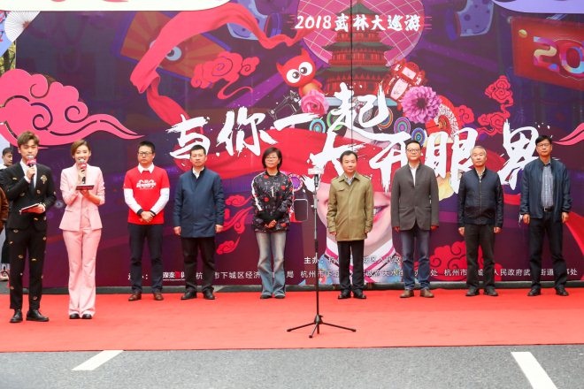 此次大巡游途徑武林商圈核心區(qū)的延安路、鳳起路,全程1.1公里,歷時(shí)一個(gè)半小時(shí)。