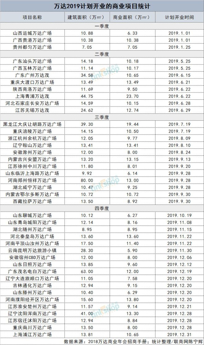除了華南地區外,據了解,2019年萬達集團將在全國北區、中區、南區三大主區,以及東北、華北、西北、中南、華東、華中、西南、華南、東南九個運營區,開出41個商業項目。