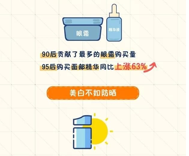 其次,抗初老被90后提上了日程。白皮書顯示,90后已經(jīng)走在了抗初老的第一線,其中,購(gòu)買眼霜最多的是90后,購(gòu)買面部精華增速最快的是95后,同比增長(zhǎng)高達(dá)63%,為了推遲“再見青春”,敢說敢做的90后在抗初老上果然“讓我疲憊卻永不后悔”。