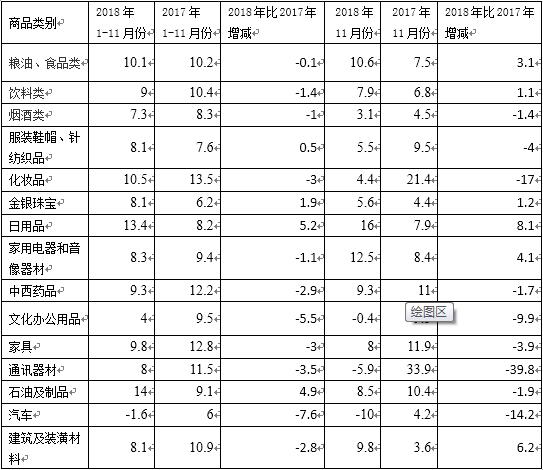 2018年1-11月份消費品市場運行情況
