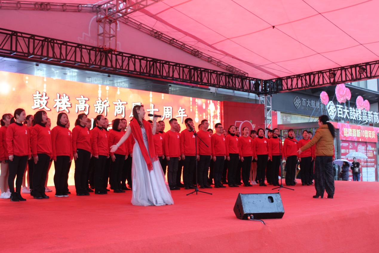 鼓樓高新商廈總經理丁世武發表致辭,回顧十年來公司的成長和取得的成就,并展望未來的美好發展藍圖。隨后,鼓樓高新商廈全體管理人員和部分員工為現場觀眾獻上飽含深情的大合唱《今天是你的生日》,用悠揚的歌聲為鼓樓高新商廈送上最誠摯的祝福。三樓商場員工通過精彩的舞蹈串燒釋放熱情,感染現場的每一個人。二樓商場員工以慷慨激昂的詩歌朗誦《感恩十年》,為大家講述員工們這十年一路走來的心路歷程。漫舞蹈社帶來充滿動感與活力的爵士舞,讓現場的氣氛愈加熱烈。梁總和丁總還代表鼓樓高新商廈向天樂社區進行捐贈,用于幫助社區困難家庭及個人,在承擔社會責任的同時傳遞愛心與溫暖。天樂社區王書記也發表致辭,為鼓樓高新商廈的十周年生日送上祝福。