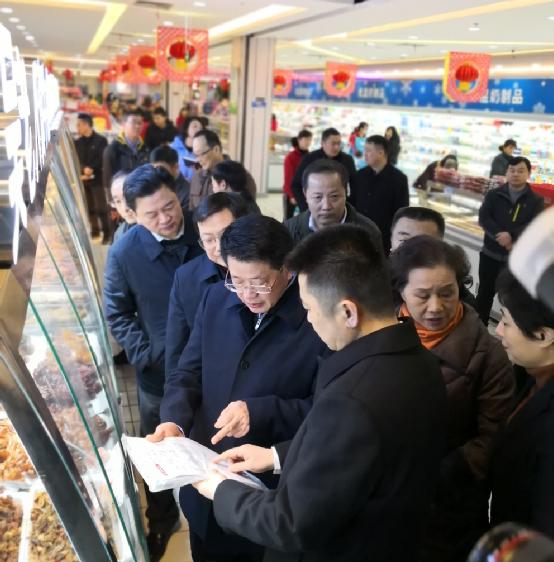 檢查中,楊光榮副省長重點實地查看了合家福超市節前糧、油、肉、菜等食品安全、市場價格等監管情況。在熟食區,楊光榮副省長仔細詢問工作人員關于熟食銷售應注意的問題,認真查看產品批次監測報告及索票索證情況。在蔬果區,他詳細了解蔬菜價格、銷售、產地和快檢情況。劉浩董事長匯報了合家福春節期間食品安全、消防安全、惠民菜籃子及肉菜可追溯等相關工作情況,并表示將全力確保商品質量安全,讓老百姓買到放心商品