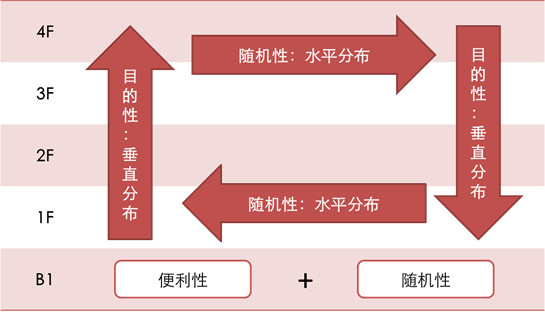 做這樣的區(qū)分有什么意義?——這會(huì)為賣場(chǎng)的品類組合、動(dòng)線規(guī)劃提供一個(gè)重要的參考維度。所謂好的品類組合,本質(zhì)就是對(duì)目的性與隨機(jī)性品類進(jìn)行有效組合,使得兩大類別之間的交互效率提升,有效促進(jìn)客流的內(nèi)部流動(dòng)與購(gòu)買轉(zhuǎn)化。