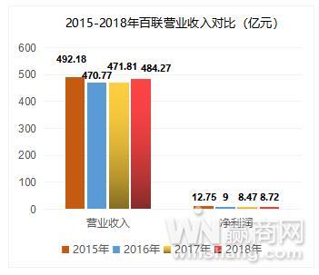 報告顯示,2018年百聯實現營收約484.27億元,同比增長 2.64%,不過還未突破2015年營收數字;新零售浪潮下,百聯歸屬于上市公司股東的凈利潤從2015年的12.7億下滑至8.72億,卻是近4年來首次增長。