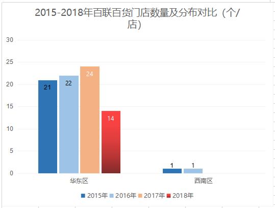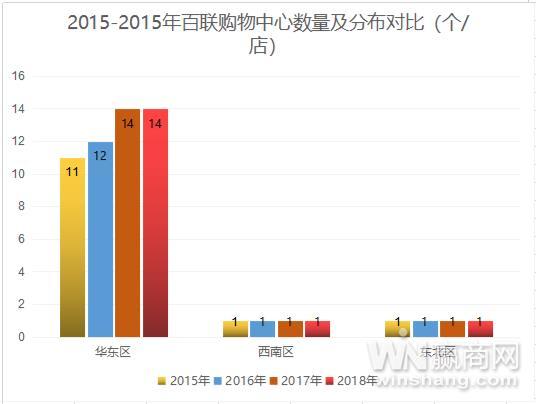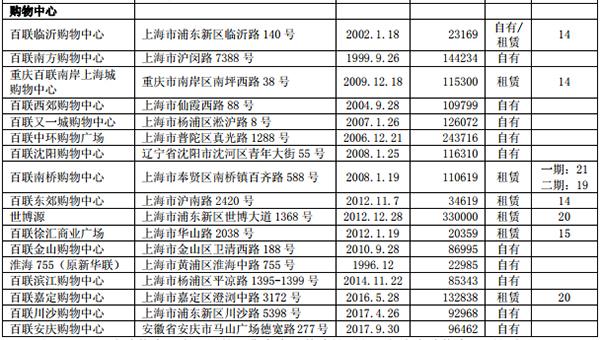 截至2018年底,百聯在全國擁有16家購物中心,西南、東北地區各一座,其他14座均布局在華東。
