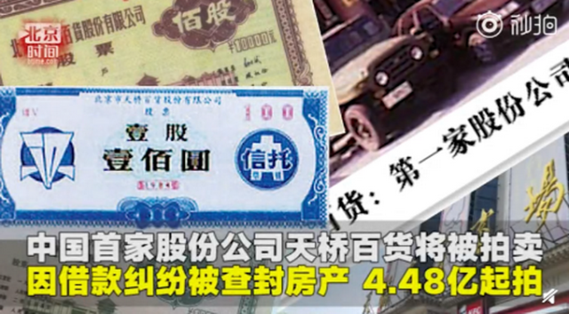 中國第一家股份公司,天橋百貨將被拍賣,起拍價4.48億元
