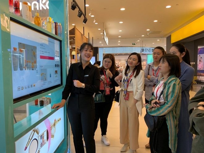 消費者可以通過云店一鍵視頻品牌專柜導(dǎo)購,導(dǎo)購?fù)ㄟ^云店提供專屬服務(wù)。消費者在云店上下單后,銀泰將安排專門的服務(wù)人員將商品送到消費者手中,在商品送達時,服務(wù)人員將二次連線專柜,幫助消費者進行驗貨、保養(yǎng)護理、售后解說等服務(wù)。