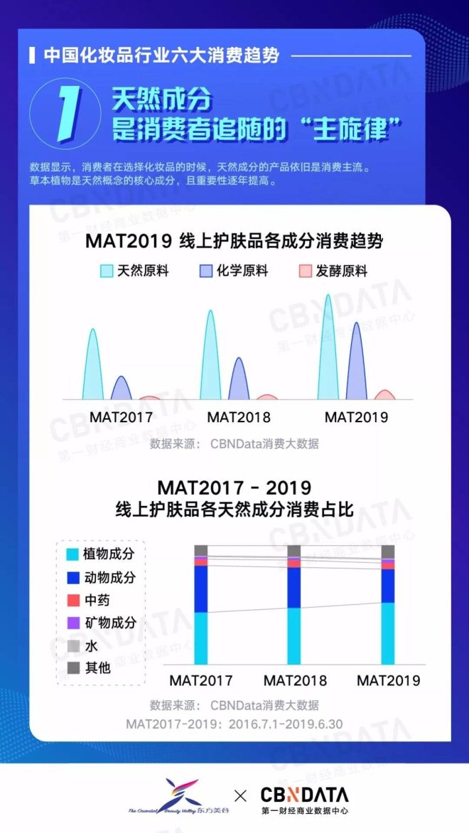 在產業集聚、行業新技術、產業鏈優化等推動下,中國化妝品行業進入“新經濟”全面覺醒的時代。而中國消費者年齡結構的變更、消費需求的分化以及多元化,既為化妝品品牌提供了令人興奮的機會,同樣也帶來了前所未有的挑戰。對此,CBNData《報告》指出了中國化妝品行業的六大消費趨勢關鍵詞:“天然成分”、“初抗老”、“極致妝容”、“美妝國貨”、“輕醫美”、“口服美容”,并予以深入解析。