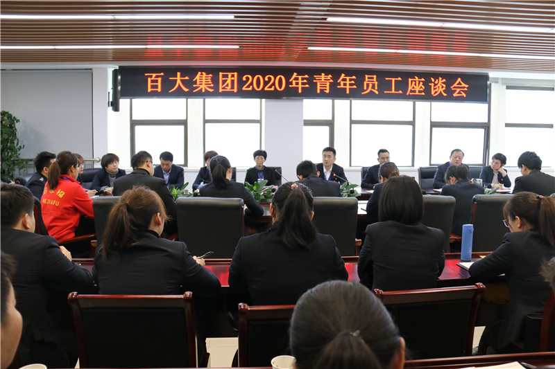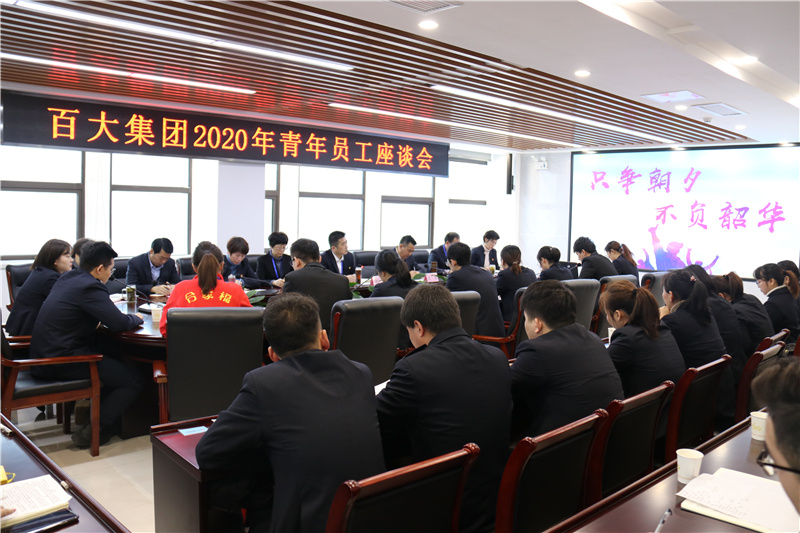 迎新年萬象更新,暢未來前程似錦。2020年1月11日上午,百大集團召開以“只爭朝夕 不負韶華”為主題的青年員工座談會,總部相關中心部室負責人和40多名青年員工代表參加了座談會。集團公司黨委書記、董事長劉浩,黨委副書記、總經理王浩,黨委委員、工會主席裴文娟出席會議。
