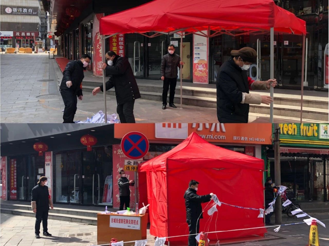 二是強化總體統籌,與所屬社區協同作戰。公司在前期全力配合所屬昭明社區各項防疫工作的同時,繼續深入細化。2月16日,在昭明社區指導下對防控點道路進行了封閉,于鼓樓巷與銅堤巷路口、雅思東門兩處防控執勤點實行24小時封閉式管理。為及時高效的完成卡點布控任務,公司領導親自上陣,帶領黨員干部加班加點為防控點搭置帳篷、桌椅,并及時解決夜班執勤的用電問題。在人員配置上,總體統籌規劃,分三班進行24小時值守,并細化了值守要求,做到登記內容不漏項,除一線醫務人員、防控值班及就醫外,一律勸返,沒有證明一律勸返,盡可能減少人員出入。截至2月25日,公司所在昭明社區統籌安排值班人員58人次。