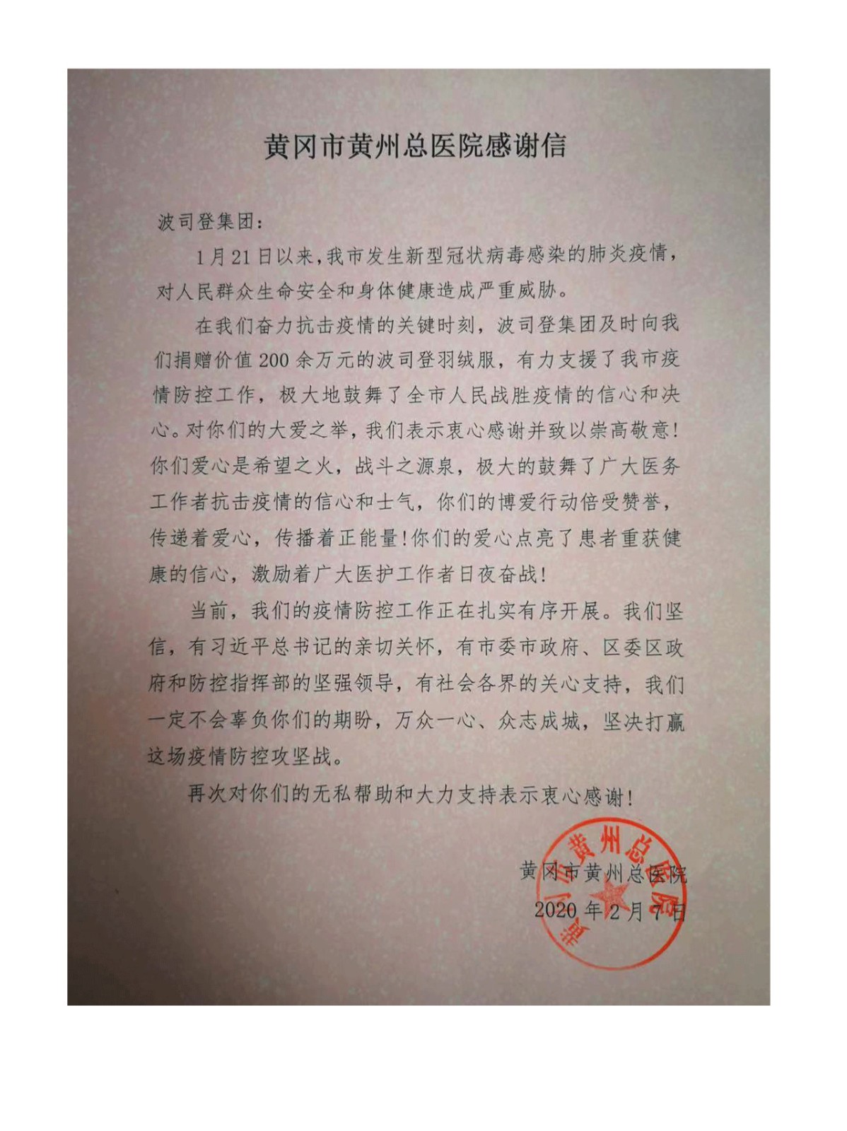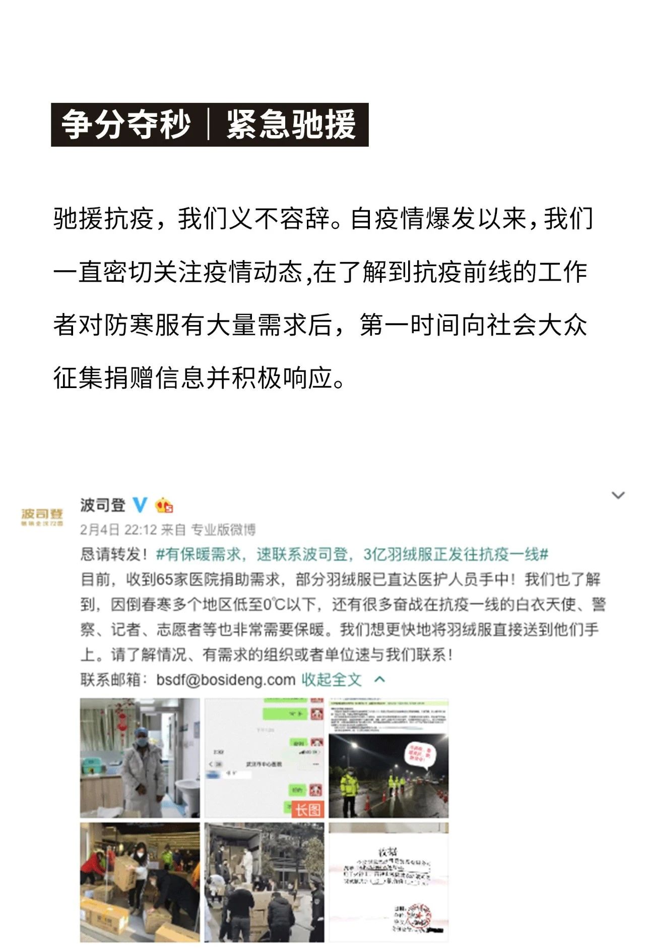 波司登全力馳援,3億元羽絨服已送達前線