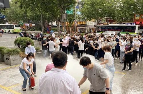 黃金廣場(chǎng)、綠葉菜市場(chǎng) 6月16日,黃金廣場(chǎng)100余名職工參加了消防安全疏散演習(xí)。隨著警報(bào)鈴聲的響起,由各樓面經(jīng)理帶頭從商場(chǎng)北樓梯井然有序疏散到商場(chǎng)東廣場(chǎng)集合。隨后,各樓面員工代表手持滅火器進(jìn)行了實(shí)戰(zhàn)操作;6月24日,在綠葉菜市場(chǎng)淞興店開(kāi)展了一次消防安全疏散演練。菜場(chǎng)人員在聽(tīng)到警鈴響起后,用濕毛巾捂鼻迅速進(jìn)行疏散逃生。菜場(chǎng)管理人員還現(xiàn)場(chǎng)進(jìn)行了滅火器使用演練,進(jìn)一步提高了大家的消防安全意識(shí)和安全自救能力。
