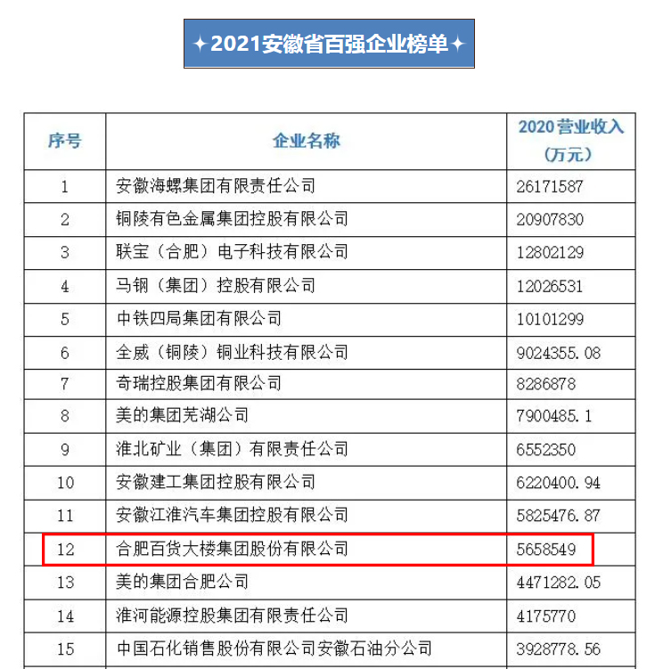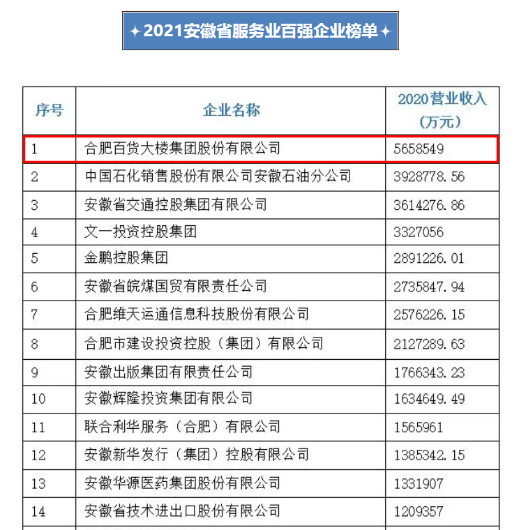 合肥百大位列2021安徽百強(qiáng)第12位、服務(wù)業(yè)百強(qiáng)首位